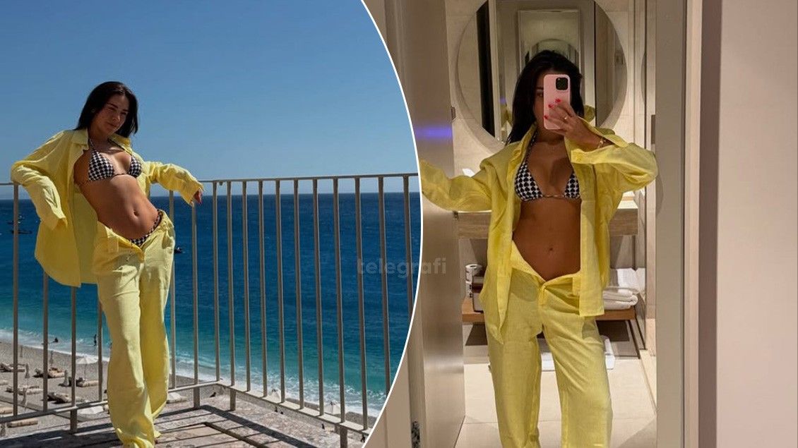 E veshur me një set në ngjyrë të verdhë të ndezur, të kombinuar me bikini bardhë e zi me print gjeometrik, ajo ka sjellë një atmosferë të gjallë verore dhe elegancë natyrale.