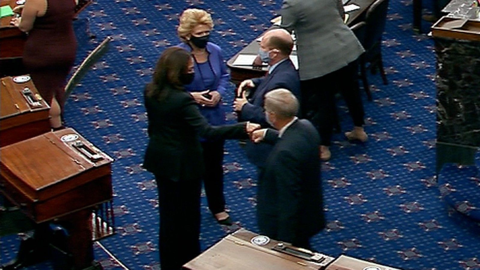 Disa senatorë republikan sot e përgëzuan Kamala Harrisin në dyshemenë e Senatit - edhe kur janë në krah të presidentit, Donald Trump.