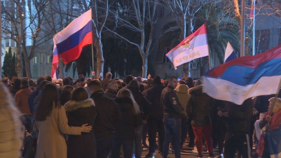 Qytetarët serbë të Malit të Zi i kanë dhënë mbështetje agresionit rus në Ukrainë para ndërtesës së Kuvendit të Malit të Zi.