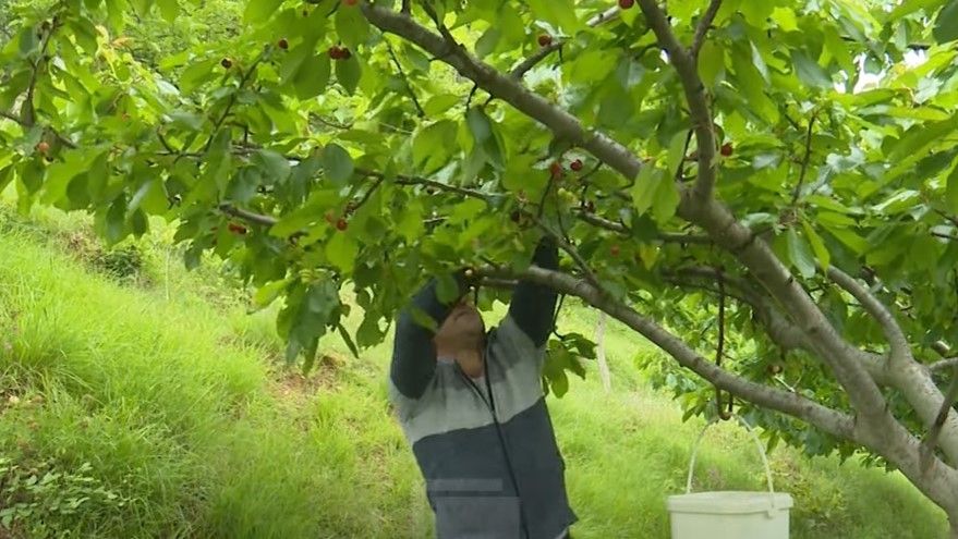 Në fshatin Surroj Hekuran Keci para 15 vitesh ka mbjellë 300 fidanë qershi. Ai tregon se është i kënaqur me prodhimin e tyre.