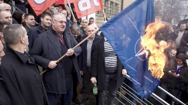Sheshel djeg flamurin e NATO-s dhe të BE-së