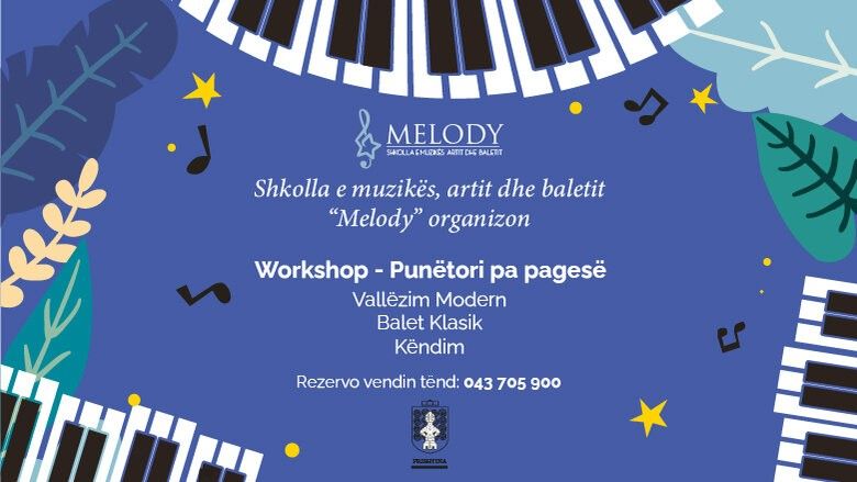 Shkolla e Muzikës, Artit dhe Baletit “Melody” e licensuar nga MASH në bashkëpunimin me Komunën e Prishtinës organizon punëtorinë “Përfshirja e fëmijëve në aktivitete jashtëkurikulare”.