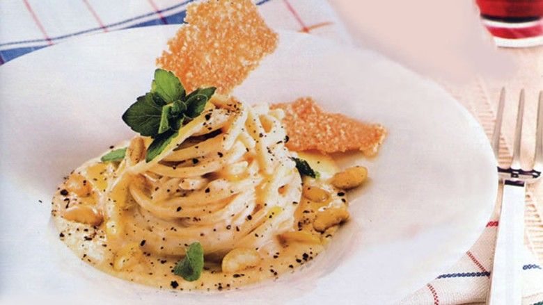 Nevojiten:▪ 320 g shpageta të trasha ▪ 2 kokë qepe ▪ 50 ml verë e bardhë ▪ 1 patate ▪ 50 gramësh ▪ 30 g parmigjan të grirë në rende ▪ 80 g gjalpë ▪ 40 g fasule të thatë pa lëvore ▪ 1 tubë rigoni ▪ vaj ulliri ▪ 8 g piper të zi të shtypur ▪ kripë dhe biber i bluarPërgatitja: