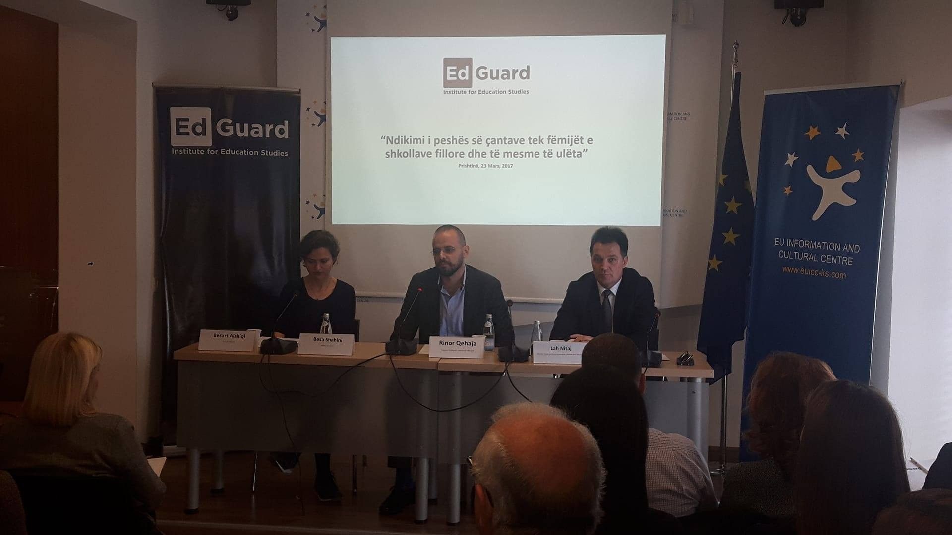 Insitituti EdGuard ka prezantuar sot gjetjet e hulumtimit “Ndikimi i peshës së çantave tek fëmijët e shkollave fillore dhe të mesme të ulëta”.