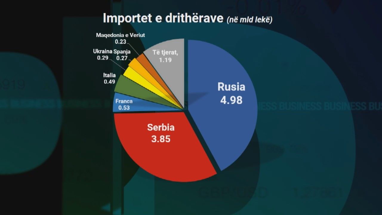 Sipas të dhënave zyrtare të INSTAT, Rusia është vendi kryesor i origjinës për drithërat e importuara në vendin tonë, me vlerë thuajse 5 miliardë lekë për vitin 2021, pasuar nga Serbia në vendin e dytë me 3.8 miliardë lekë.