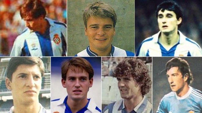 Sola, Vantolra, Padron, Portas, Franco, Gonzalvo, Quique, Elias, Cardus, Canal, Flotat, Camps, Marcial, Ramoni dhe Ramos kanë veshur të dy fanellat, së pari të Espanyolit dhe pastaj të Barçë.