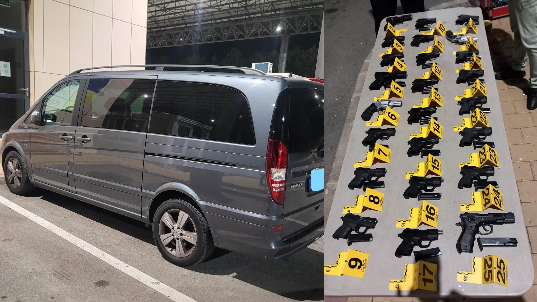 “24 revole të tipit Zoraki 9 mm, të modifikuara nga lloji i armës me plumba me gas, në armë me fishekë zjarri , një veturë furgon - Mercedes me targa gjermane, 650 euro para të gatshme, 3 telefona dhe një DVR”.
