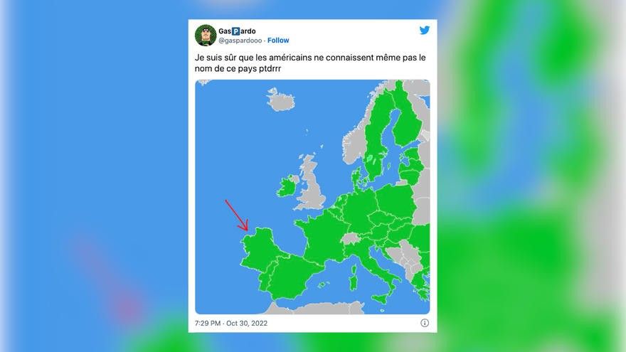 “Jam i sigurt se amerikanët nuk e dinë as emrin e këtij vendi”, tha përdoruesi i Twitter-it, Gaspardo më 30 tetor, duke shoqëruar një hartë me një shigjetë të kuqe që i drejtohet pllakës së tokës, e shtuar në Spanjë dhe Portugali dhe me ngjyrë të gjelbër, duke nënkuptuar ky ishte një vend anëtar i BE-së.