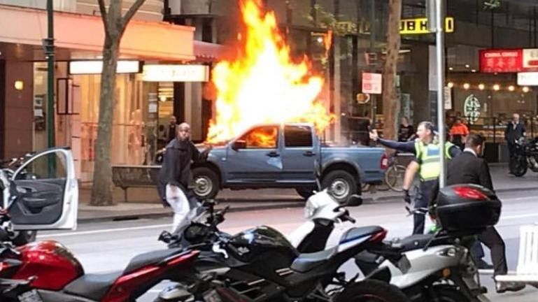 Policia tha se ai ka sulmuar tre kalimtarë me thikë, pasi ka dalë nga një kamion, i cili më pas është përfshirë nga flakët, përcjell rel.