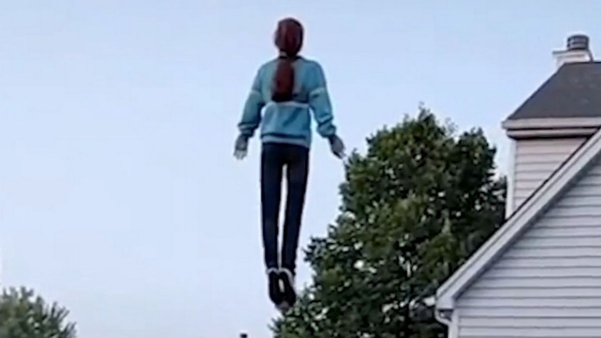 Si dekorim për Halloween, një çift kanë arritur ta krijojnë një figurë “fluturuese” në kopshtin e tyre të përparmë