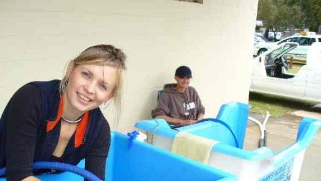 Filloni duke hedhur pak ujë të ngrohtë në qafën e qenit në mënyrë që ai të mësohet me temperaturën (uji nuk duhet të tejkalojë temperaturën 38 °).