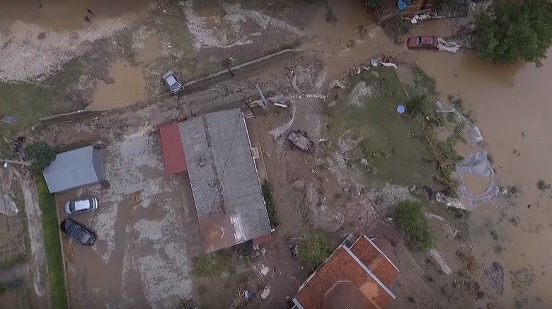 Televizioni Nova ka publikuar një video të bërë me dron mbi vendet e vërshuara ku duket mjerimi në shtëpitë dhe në oboret e shtëpive.