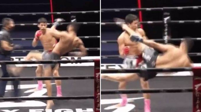 Një luftëtar i Muay Thai për pak sa nuk arriti një fitore të pabesueshme nga prapa teksa realizoi një goditje të bujshme tornado.