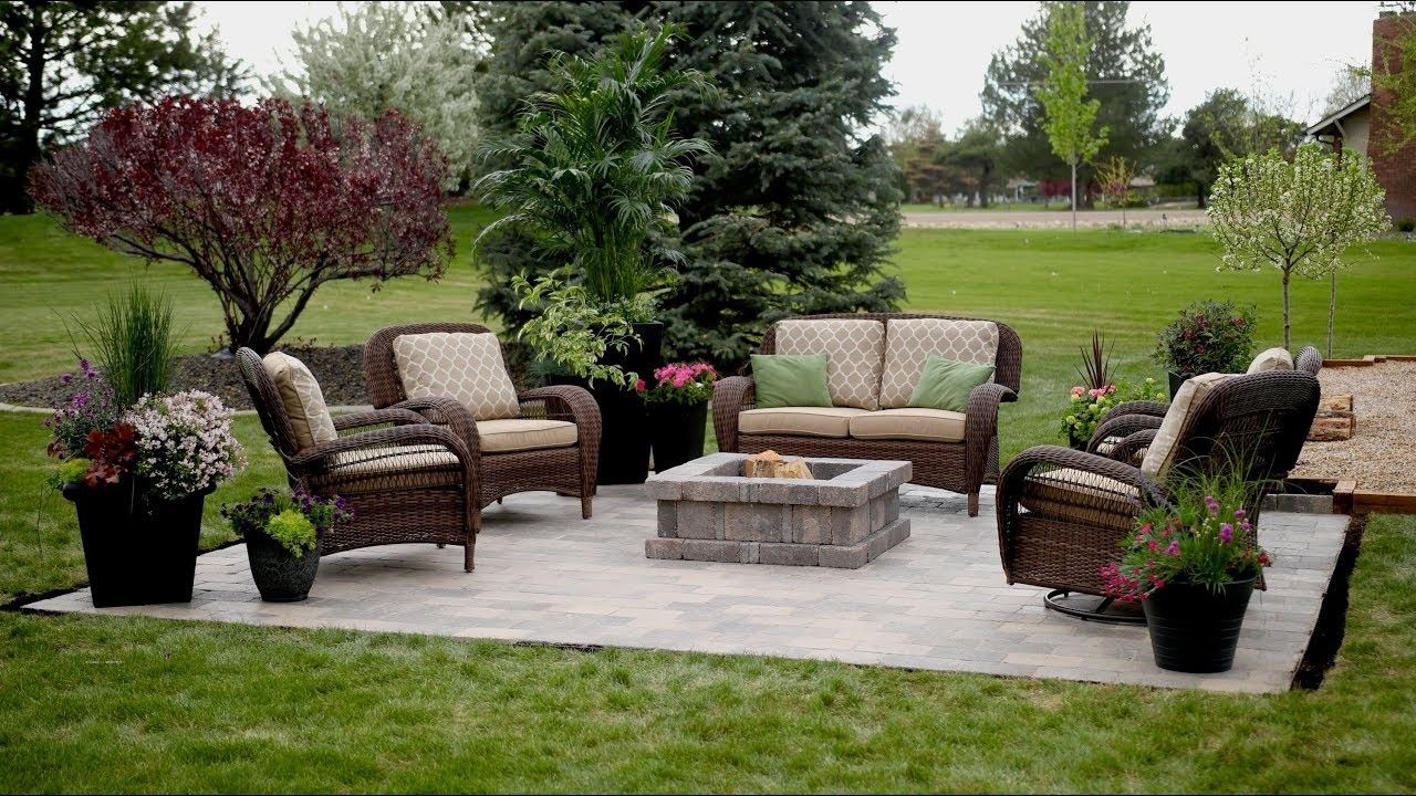Në vend të pllakës prej betoni në kopsht, bëni podium me pllaka katrore me garniturë për të ndenjur ulur.
