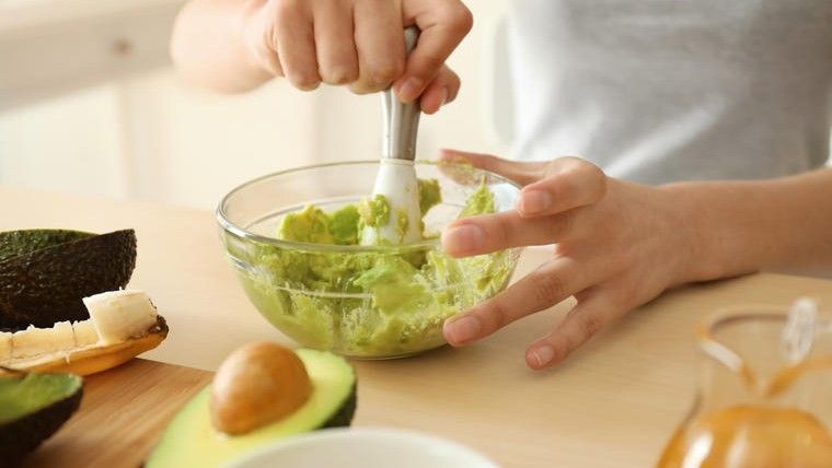 Arsyeja për çfarë kjo maskë është aq e efektshme: avokadoja është e pasur me vitaminat A, C, E, K, B dhe folate të cilat ndihmojnë në shkatërrimin e radikaleve të lira dhe në qetësimin e foto-dëmtimeve në lëkurë.