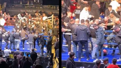 Një turne boksi në qytetin turk Trabzon u shndërrua në kaos, pasi një përballje për titullin e kampionit të botës të Universal Boxing Organization (UBO) përfundoi me përleshje masive.