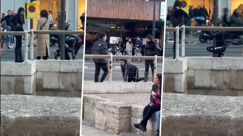 Ne shohim një vajzë të re që ecte një djalë të ri me zinxhir, dhe gjithçka ndodhi në rrugën e ngarkuar Colon Street të Valenciës. Në një kohë të shkurtër, vetëm në TikTok, videoja është parë më shumë se 2.4 milionë herë.