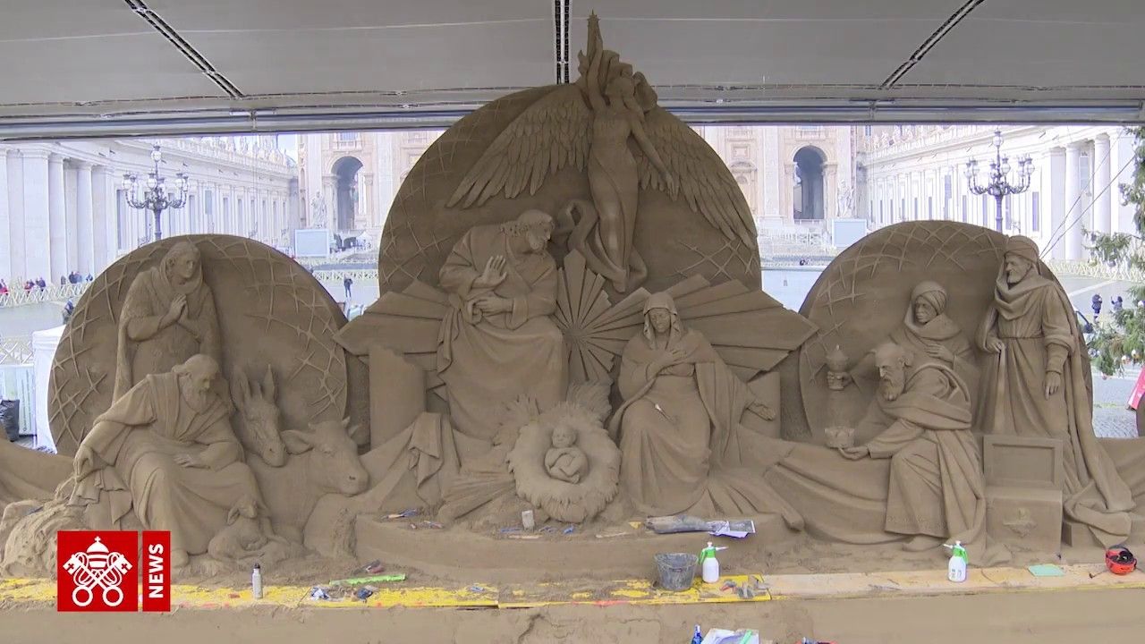 Skulptura e rërës e cila shfaq skenën e lindjes së Krishtit ka një sipërfaqe prej 25 metra katrorë, me një bazoreliev prej 16 metrash e një lartësi mbi 5 metra. Këtë skulpturë Papa Françesku pritet ta vizitojë natën e ndërrimit të viteve më 31 dhjetor, pas meshës Te Deum.
