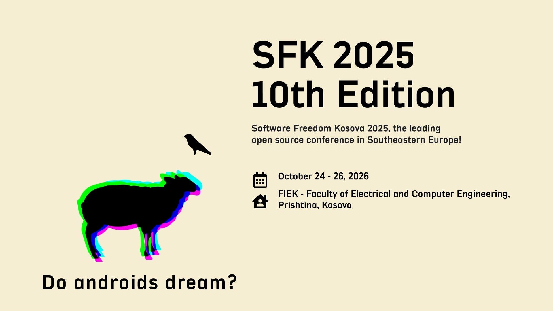 Nga 24 deri më 26 tetor 2025, Fakulteti i Inxhinierisë Elektrike dhe Kompjuterike (FIEK) në Prishtinë do të jetë nikoqir i edicionit jubilar të Software Freedom Kosova (SFK), konferencës më të madhe për teknologjitë e hapura në Evropën Juglindore.
