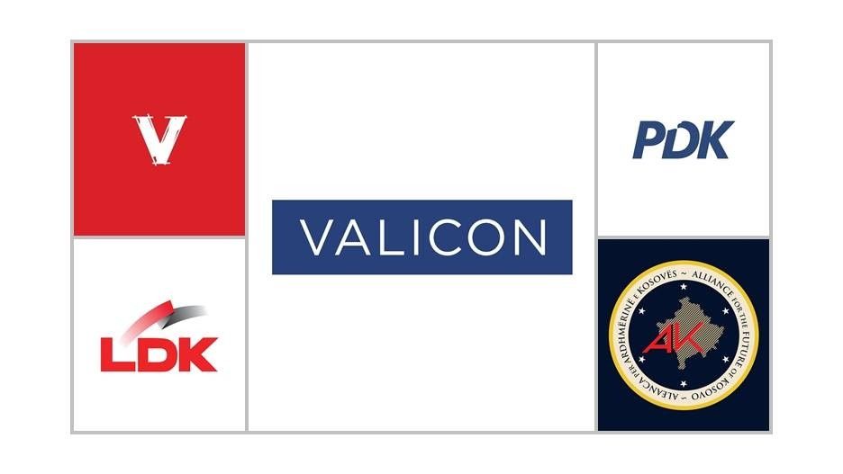 Përveç partisë VV, vetëm tre parti të tjera do të arrijnë më shumë se 5%: PDK, LDK dhe koalicioni Aleanca për Ardhmërinë e Kosovës, Nisma Socialdemokrate, Lista Konservatore, Forumi intelektual – E- 30. Këto zgjedhje duket se janë pyetja nëse VV do ta arrijë shumicën apo jo, pasi ata janë në kufirin e kalimit të 50%. Valicon është një kompani e specializuar në ofrimin e shërbimeve të hulumtimit të tregut dhe analizave statistikore.