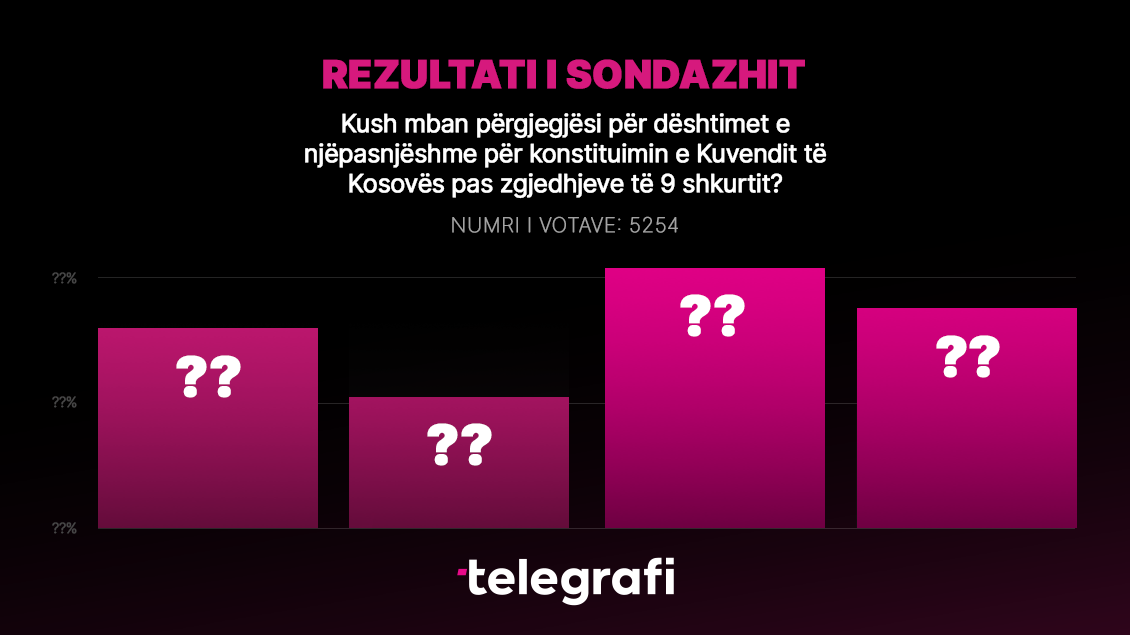 Pyetja e sondazhit ishte: “Kush mban përgjegjësi për dështimet e njëpasnjëshme për konstituimin e Kuvendit të Kosovës pas zgjedhjeve të 9 shkurtit?”.