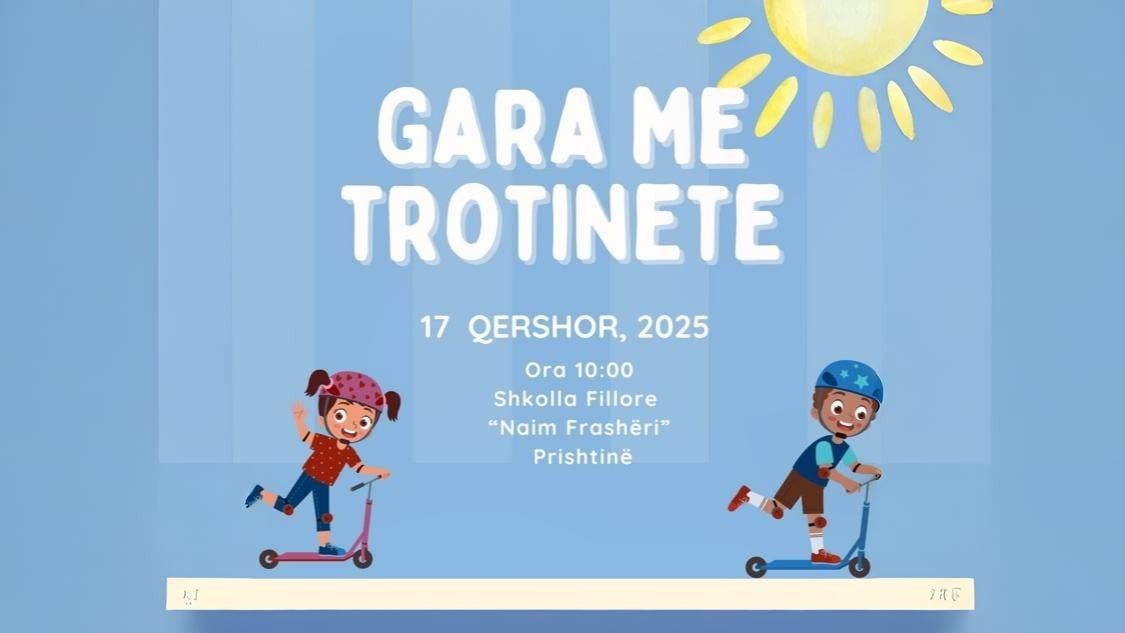 Sot, në oborrin e Shkollës Fillore “Naim Frashëri” në Prishtinë, gjashtë shkolla fillore nga e gjithë Kosova do të marrin pjesë në Garën Finale me Trotineta.