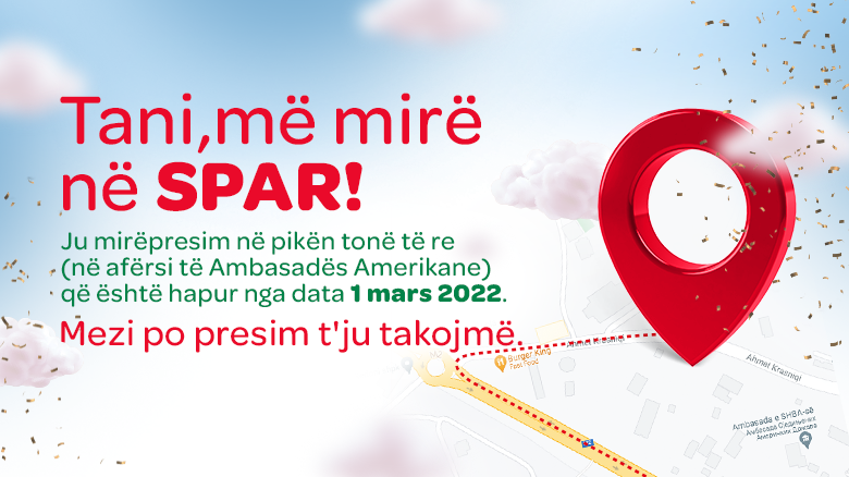 Nga sot, mezi presim t'ju takojmë çdo ditë në pikën tonë të re, me një ekip që do të jenë gjithmonë të gatshëm për t'ju shërbyer. Kombinimi i praktikave ndërkombëtare si dhe njohuritë vendore, së bashku me vlerat e menaxhimit e bëjnë supermarketin SPAR më të veçantë.