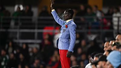 A devoted DR Congo supporter named Michel "Lumumba" Kuka Mboladinga has captivated audiences worldwide at AFCON 2025 with his remarkable displays of endurance: remaining completely motionless with one hand raised during the matches and refusing to sit for over 90 minutes all in a… pic.twitter.com/EEWd49NT2W