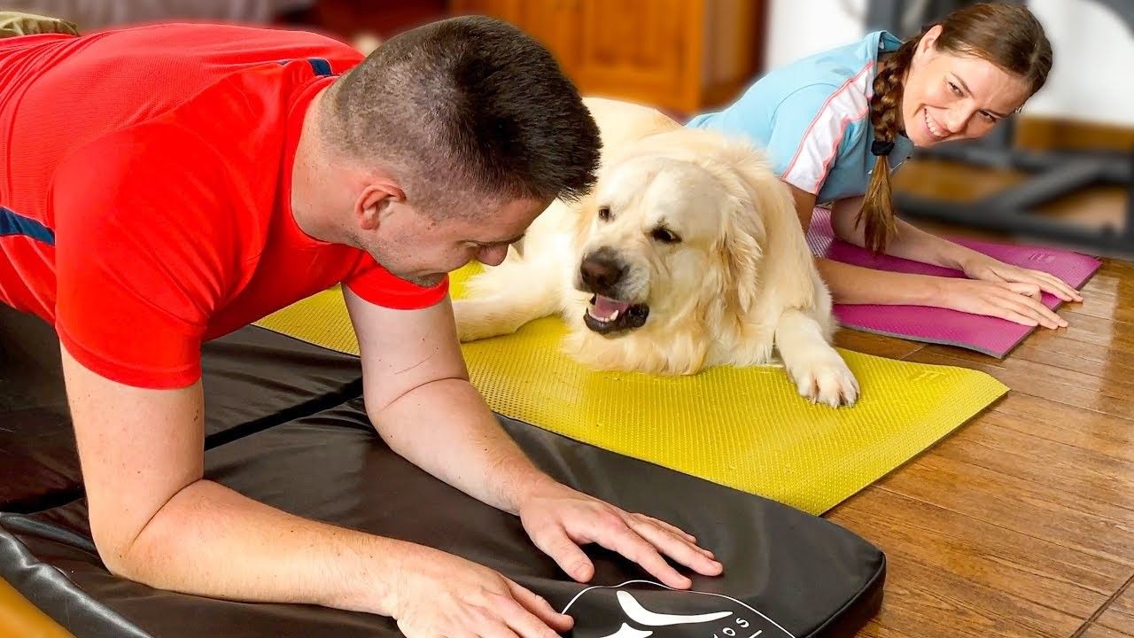 Një video që ka grumbulluar më shumë se 6.5 milion shikime në YouTube tregon një retriever të ëmbël të artë që befason pronarët e saj duke u përpjekur të bëjnë një rutinë të përditshme ushtrimesh