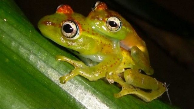 Në ishullin Madagaskar, Penny ka gjetur këtë bretkosë që jeton në pemë, në kohën që nuk është në ujë.