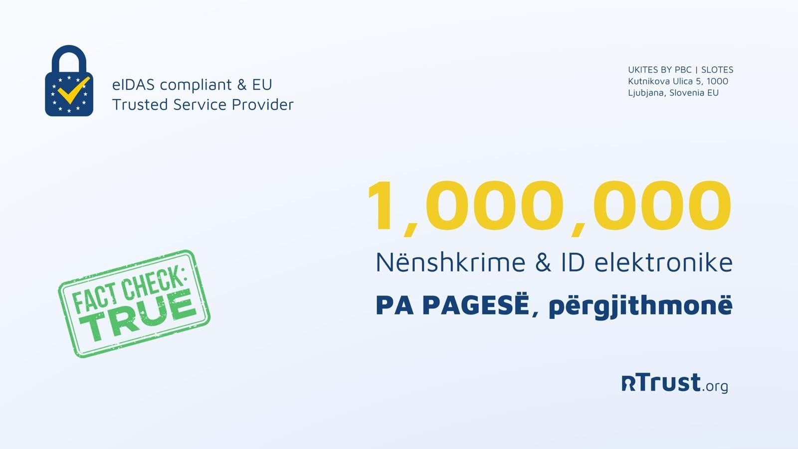 Ju kujtojmë se rTrust nuk do të kërkojë kurrë pagesë për nënshkrimet elektronike dhe identitetet dixhitale të lëshuara gjatë kësaj periudhe. Pra, ato janë pa pagesë, përgjithmonë.