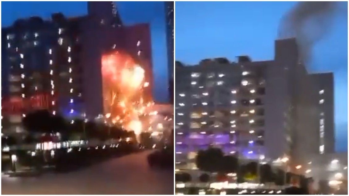 Pamjet e publikuara nga mediumi Nexta tregojnë momentin kur njëri prej dronëve shpërthen pranë një objekti në Moskë. /Telegrafi/