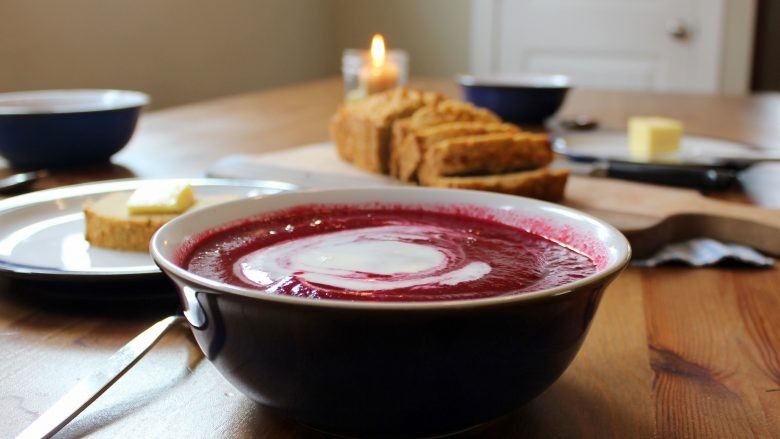 - 3 panxharë të kuq të madhësisë mesatare,- 1 patate të madhësisë mesatare,- 1 karotë,- 1 presh apo qepë, sipas dëshirës pak supë pule,- ¼ e hudhrës pluhur,- kripë sipas shijes,- 1 lugë të vogël piper të bardhë,- vaj ulliri, sipas nevojës,- pak ajkë të thartë për shërbim.