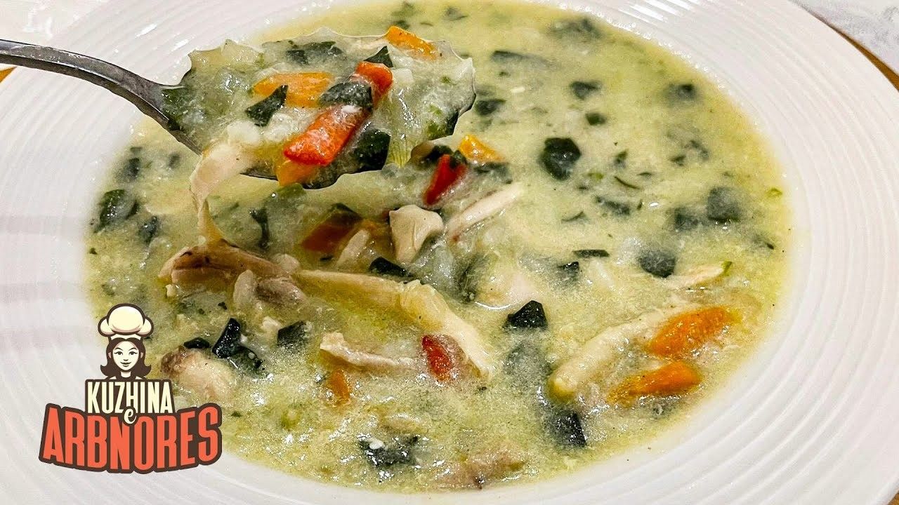 Përbërësit:▪ tri kofshë pule▪ 2l ujë▪ një lugë çaji kripë▪ dy qepë mesatare▪ një spec i kuq▪ një karotë▪ 150-200gr spinaq▪ një degë trumzë▪ 100gr oriz▪ piper i zi▪ dy kube koncentrat perimesh▪ 1.5 lugë miell misri▪ 1.5 lugë miell i bardhë▪ një vezë▪ 200ml jogurtEcuria e plotë e përgatitjes: