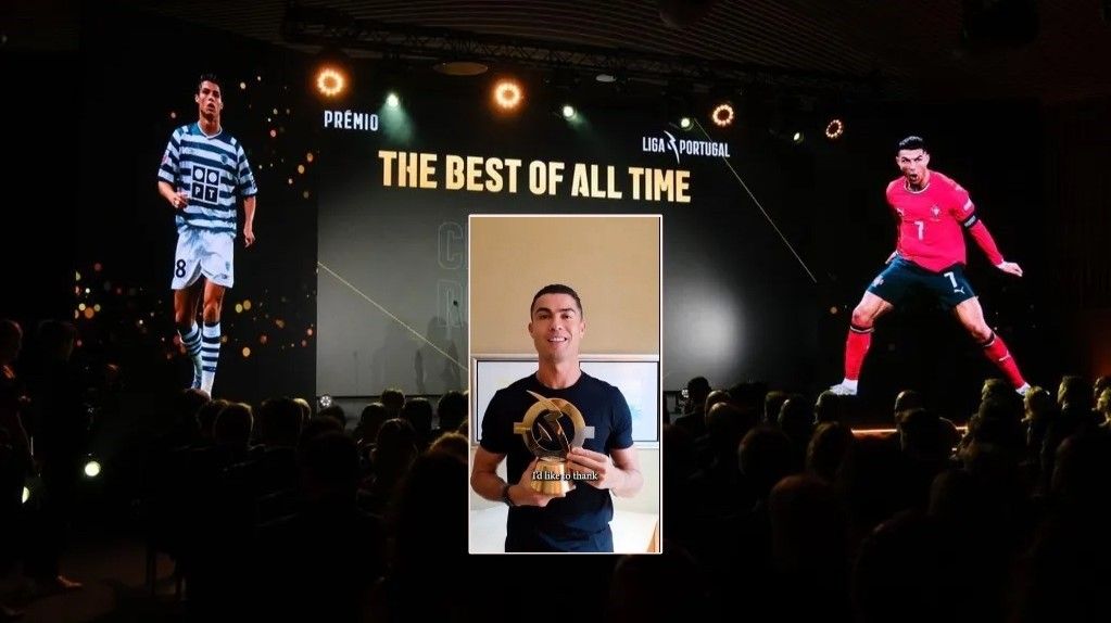 Cristiano Ronaldo është nderuar me çmimin "Më i Madhi i të Gjitha Kohërave" në Galanë e Superligës Portugeze të mbajtur në Porto të mërkurën mbrëma.