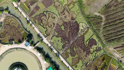 Një fushë prej dy hektarësh në Tajlandën veriore është shndërruar në një vepër arti që përshkruan një dragua dhe një mace, simbole të shpresës dhe qëndrueshmërisë ndërsa komuniteti rimëkëmbet nga përmbytjet.