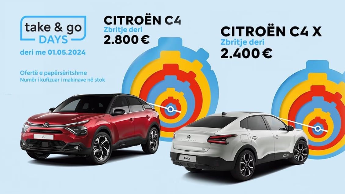 Delfin Auto ka një ofertë të papërsëritshme, në kohën e duhur për ju! Oferta TAKE & GO DAYSpërmes së cilës mund të blini Citroën C4 dhe Citroën C4 X. Super oferta është valide deri me datën 1 Maj 2024, duke ju mundësuar zbritje deri në 2.800€.