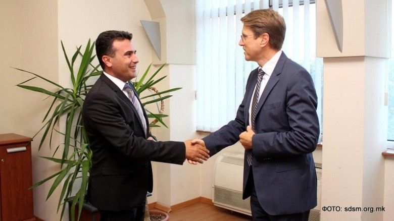 Kryetari i LSDM, Zoran Zaev i shoqëruar nga nënkryetarja Radmila Shekerinska, sot në pasdite është takuar me shefin e Delegacionit të Bashkimit Evropian në Maqedoni, Samuel Zhbogar, transmeton Telegrafi Maqedoni.