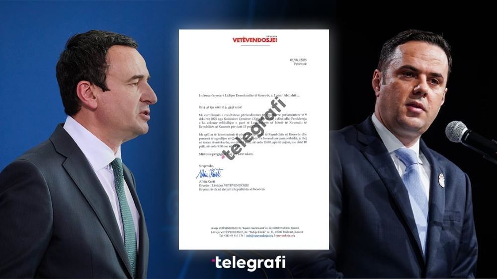 “Me qëllim të konstituimit të plotë të Kuvendit të Republikës së Kosovës dhe procesit të zgjedhjes së Qeverisë së re, për t’u konsultuar paraprakisht, ju ftoj në takim të mërkurën, me datë 9 prill, në orën 15:00, apo të enjten, me datë 10 prill, në orën 9:00 ose në 14:00”, thuhet në letrën që Kurti ia ka dërguar Abdixhikut.