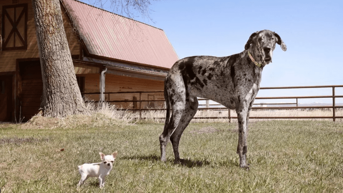 Guinness World Records shpërndau video nga takimi historik midis qenit më të gjatë të gjallë në botë, gati një metër, dhe qenit më të shkurtër, 8.8 centimetra.