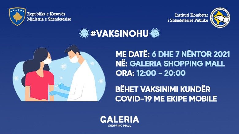 Galeria Shopping Mall në Prizren ofron hapësirë për qendër mobile të vaksinimit e cila do të jetë hapur nga data 6 nëntor, prej orës 12:00 – 20:00.