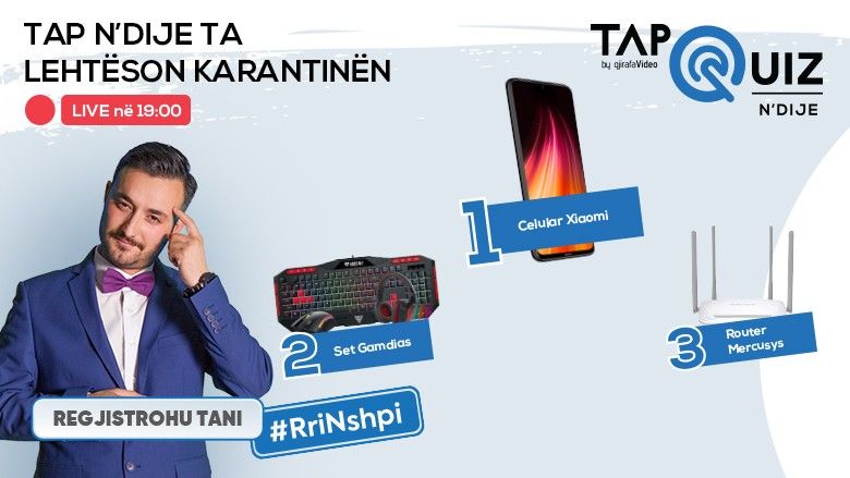 Kliko këtu për t’u regjistruar. Tap n’Dije rikthehet për një javë tjetër bombastike të quizit të dashur. Shumë pyetje sfiduese, shumë shpërblime të nevojshme, shumë lojtarë e befasi, ju presin këtë të enjte nga ora 19:00.