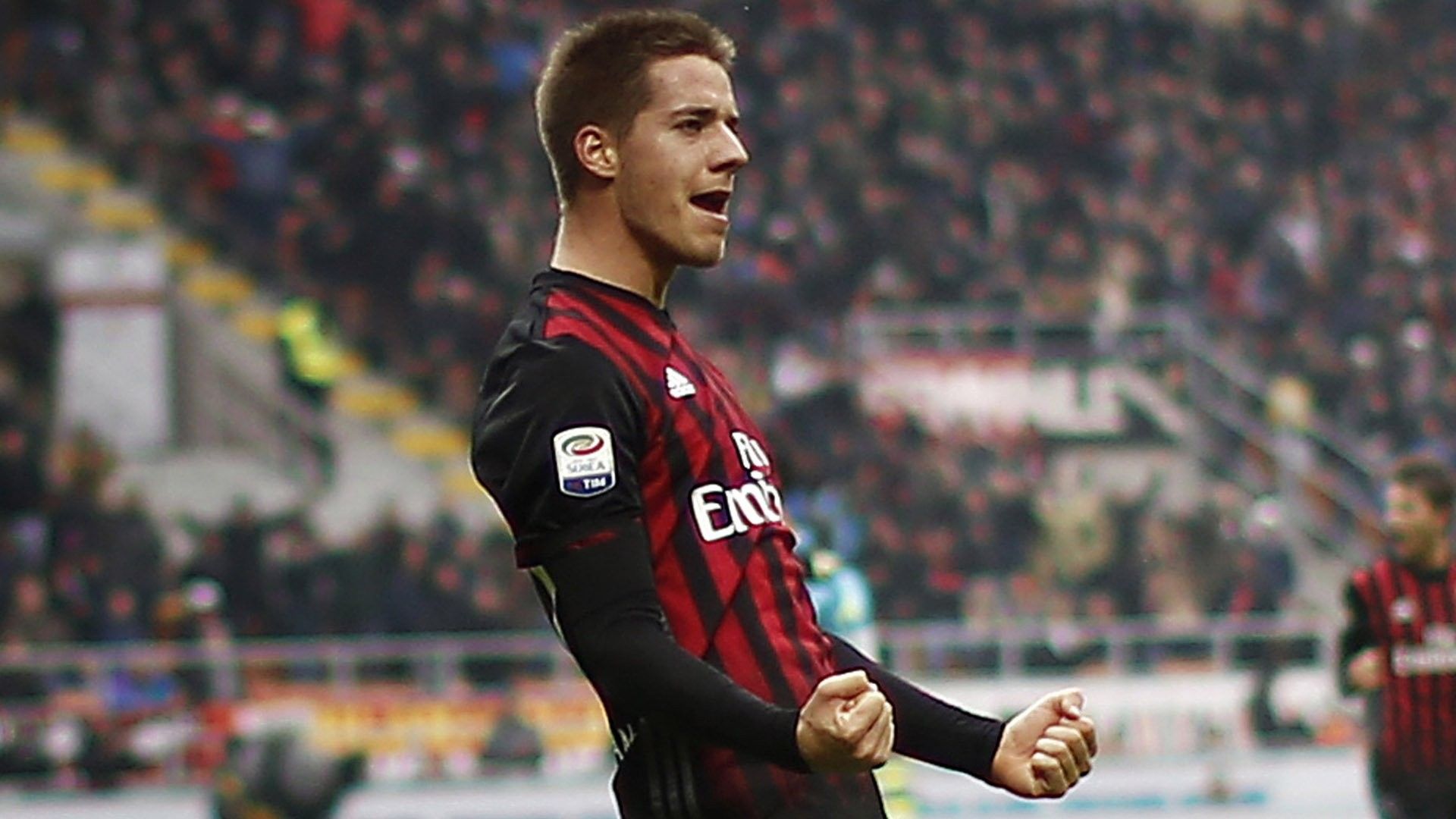 350:"AC Milan's midfielder Mario Pasalic of Croatia (L) celebrates with teammate AC Milan's defender from Italy Mattia De Sciglio after scoring during the Italian Serie A football match AC Milan Vs Crotone on December 4, 2016 at the 'San Siro Stadium' in Milan. / AFP / MARCO BERTORELLO (Photo credit should read MARCO BERTORELLO/AFP/Getty Images)