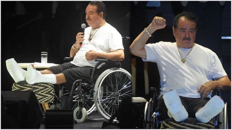 Ikona e muzikës turke, Ibrahim Tatlises, ka kënduar para fansave të tij duke u ulur në një karrocë me këmbët e imobilizuara.