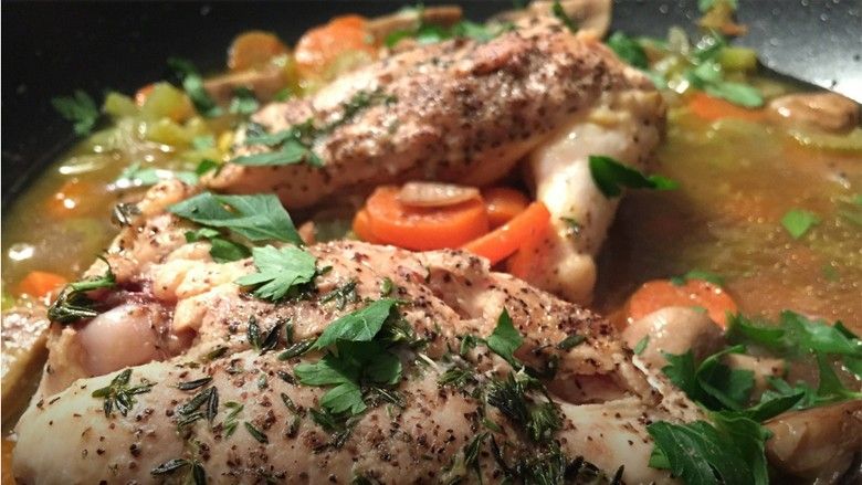 Sezoni me pak kripë dhe piper. Shtoni qumësht, ujë dhe verë të bardhë.