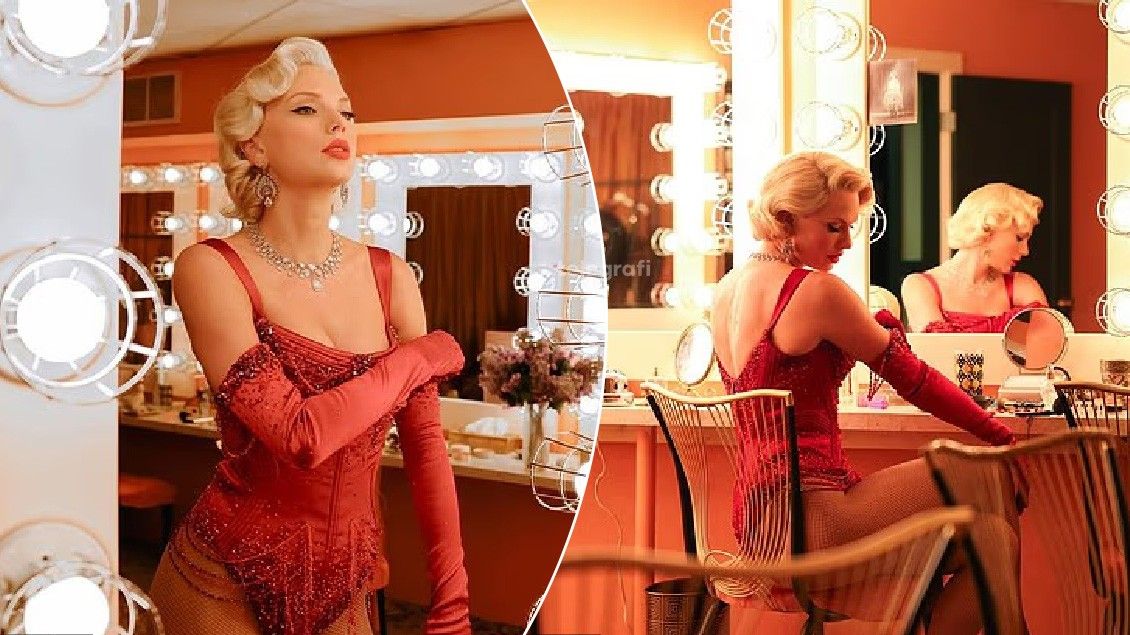 Këngëtarja 35-vjeçare shfaqet me kostume ekstravagante, duke përfshirë një korse të kuqe dhe doreza opere, ndërsa flokët e saj bionde-platini janë të stiluar me kaçurrela.