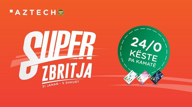 Kampanja SUPER ZBRITJA për herë të parë është lansuar në Shkurt të vitit 2016 dhe ka zgjuar interesim të jashtzakonshëm ku konsumatorët kanë përfituar zbritje reale deri në 50% nga çmimi i rregullt. Këtë vit ju do të mund të përfitoni më shumë zbritje në më shumë artikuj për sasitë e përcaktuara nga AZTECH.