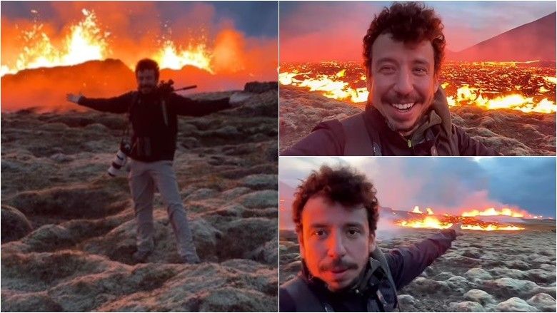 Një aventurier i quajtur Emin Yogurtcuoglu, një ekspert dhe fotograf i vetë-përshkruar i jetës së egër, postoi pamje mahnitëse të tij duke qëndruar drejtpërdrejt përballë llavës që po lëshohej në natën e parë pas shpërthimit.