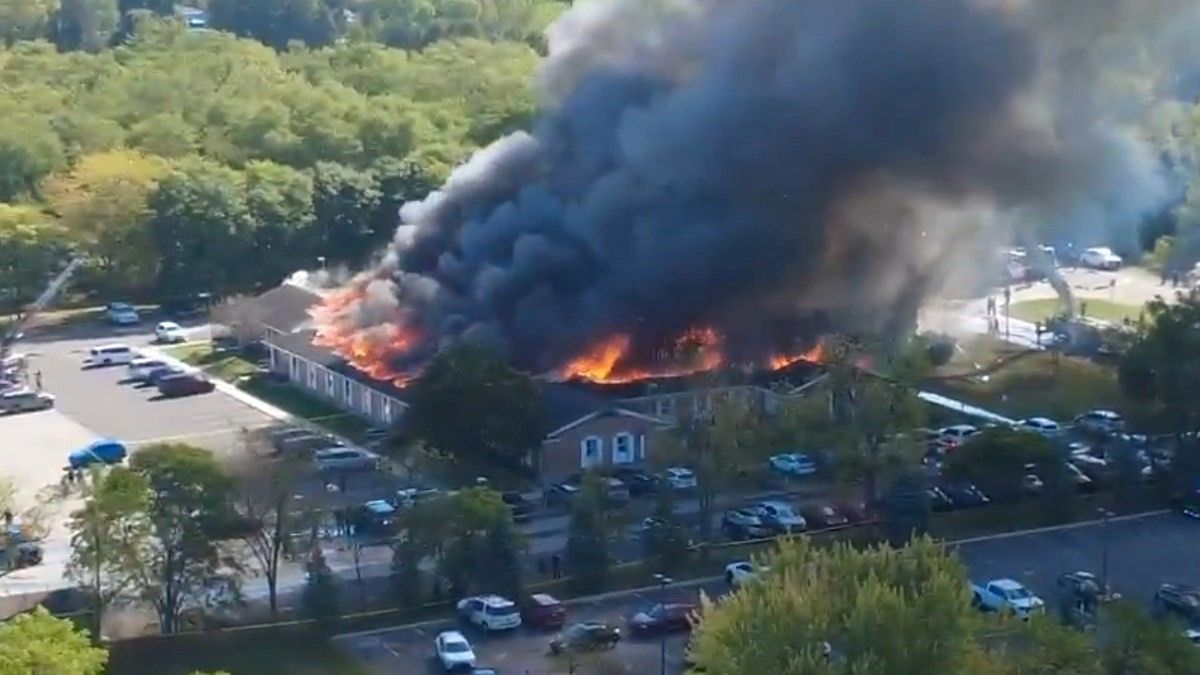 WATCH: Drone footage shows the Mormon Church on fire in Grand Blanc, Michigan, after shooter opened fire and shot multiple people.