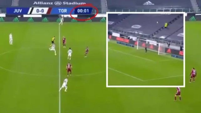 Ylli portugez tentoi nga gjysma e fushës për të befasuar portierin e Torinos, Salvatore Sirigu, menjeherë në sekondat e parë, kur topi u nis nga mesi i fushës nga Paulo Dybala.